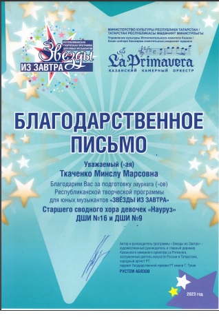 25 января в ГБКЗ им.С.Сайдашева прошел первый гала-концерт нового сезона республиканской творческой программы поддержки юных музыкантов «Звёзды из Завтра». Старший сводный хор девочек "Науруз" под руководством Ткаченко Минслу Марсовны и обучающийся 3 класса МБУ ДО "ДШИ №16" Шакиров Султан ( преподаватель Новоселова Е.М.) приняли участие в программе. Хор "Науруз" стал лауреатом. Поздравляем!