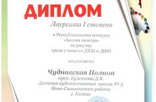 Кроме того для педагогов детских школ прошел мастер-класс от представителей Союза художников России. Этот конкурс - отличная площадка юных талантов. Профессиональные педагоги оценивают работы, и выдающимся ребятам предлагают продолжить художественный путь уже в профессиональных училищах.И МЫ ОЧЕНЬ РАДЫ ТОМУ, ЧТО НАША УЧЕНИЦА ЧУДНОВСКАЯ ПОЛИНА, УЧЕНИЦА 3"А"КЛАССА ЗАНЯЛА В ЭТОМ НЕПРОСТОМ И ОТВЕТСТВЕННОМ КОНКУРСЕ 1 МЕСТО!!!