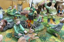 СОЗДАВАЛСЯ СТЕНД "ПАРТИЗАНСКОЕ ДВИЖЕНИЕ": 43 ФИГУРКИ ПАРТИЗАНОВ, БЛИНДАЖ, КОСТРИЩЕ, РЕЧКА И ЛЕС.