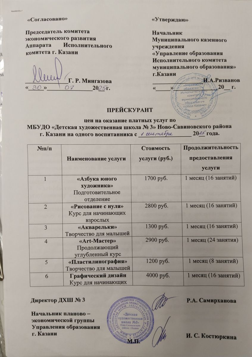 Прейскурант цен на оказание платных дополнительных образовательных услуг