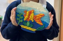 На занятиях объединения «Современное творчество» педагога Хафизовой Э.Х. дети научились изображать подводный мир аквариума с помощью пластилина, используя технику пластилиновой живописи.