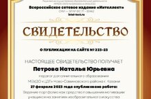 Вышла публикация статьи "Ведение портфолио как средство повышения мотивации учащихся на занятиях изобразительного искусства объединения "Радужная палитра" педагога Петровой Н.Ю. отдела декоративно-прикладного творчества и ИЗО искусства во Всероссийском сетевом журнале "Интеллект".