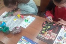 Учащиеся объединения "Акварельки" под руководством педагога Зиминой М.А. расписывали дощечки. -