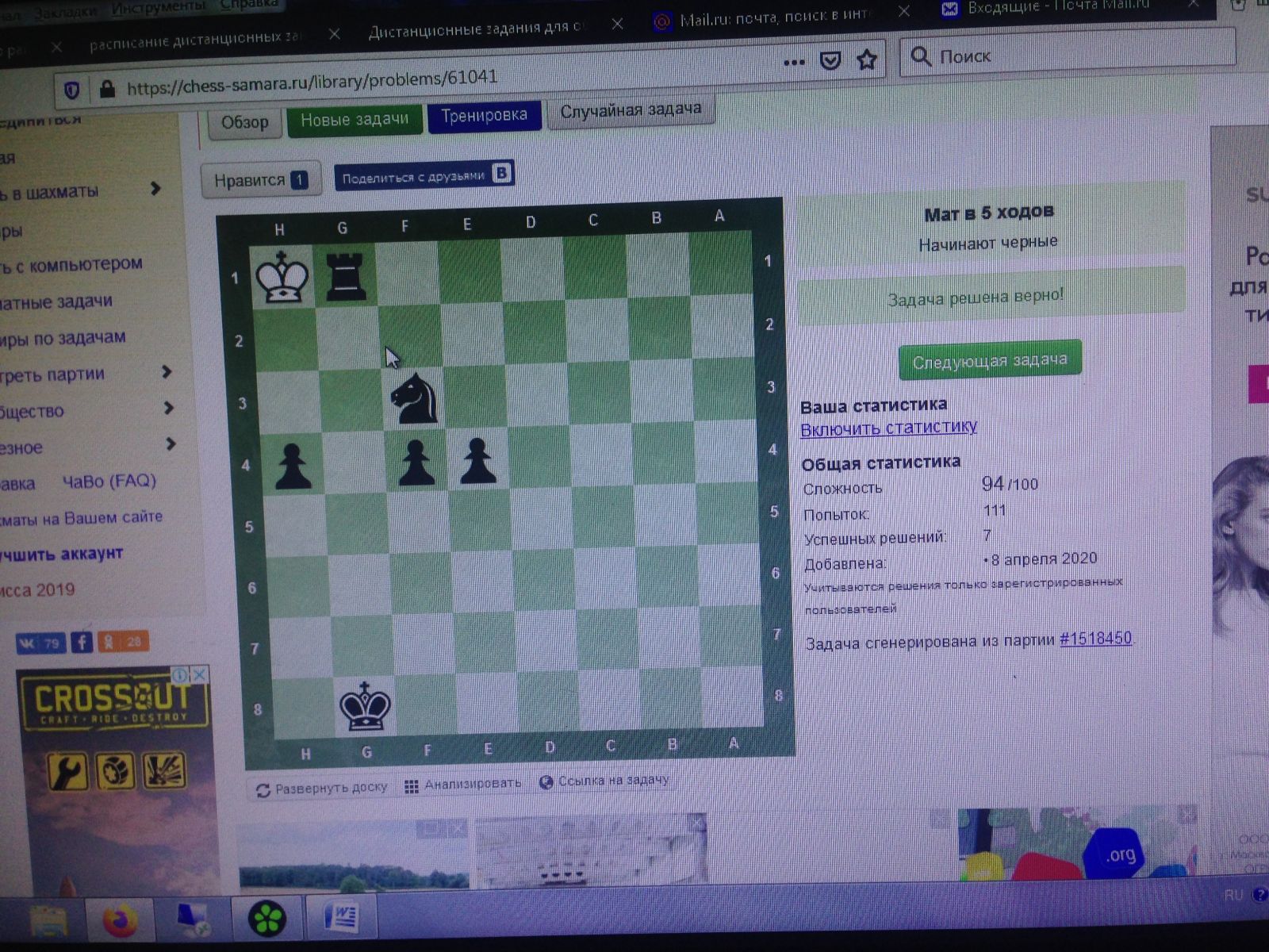 Дистанционные занятия в объединении "Шахматы" 21.04.2020