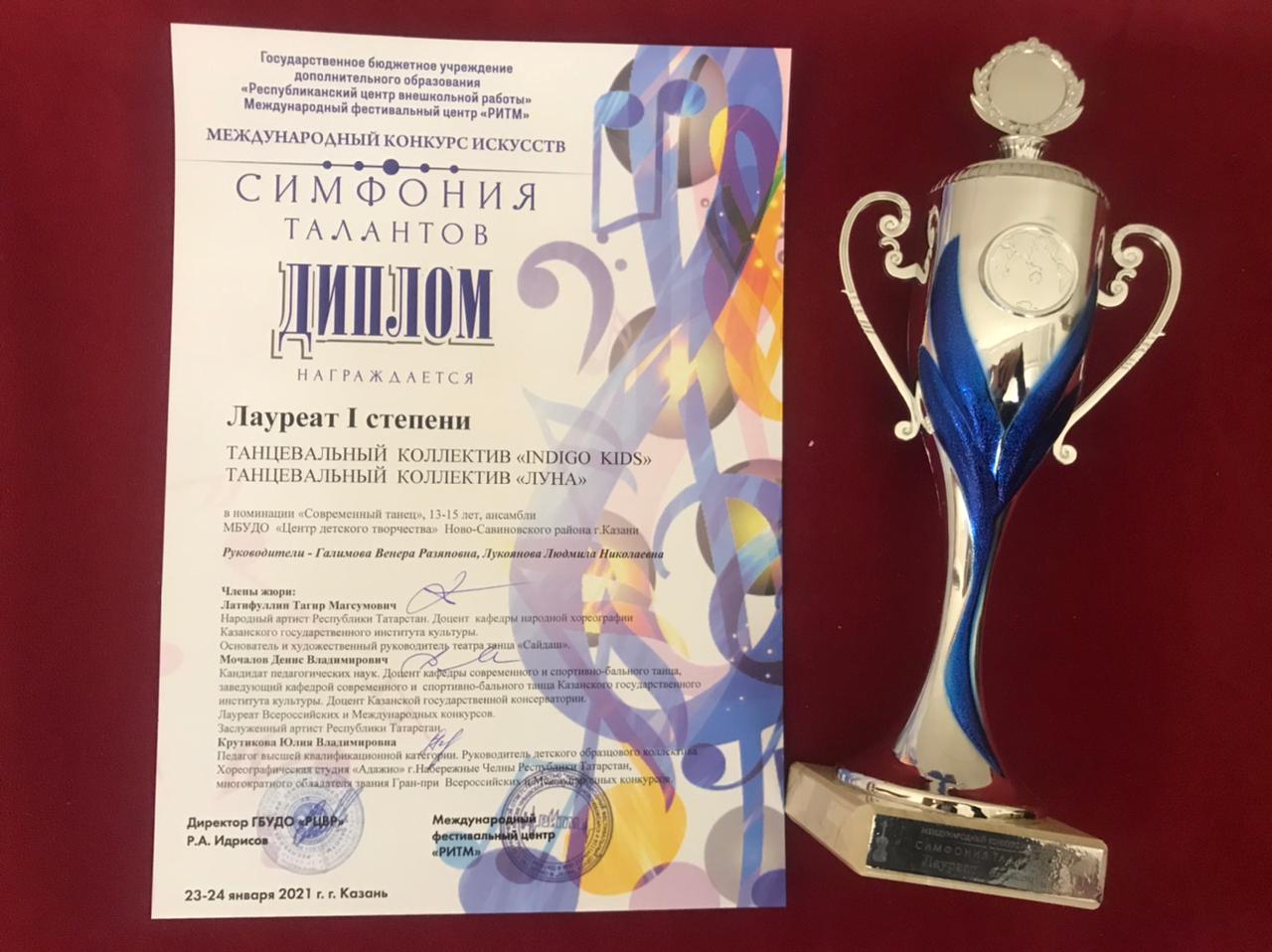 Опубликовано: 26.01.2021Поздравляем хореографические коллективы «INDIGO KIDS» и «Луна» под руководством педагогов Галимовой Венеры и Лукояновой Людмилы, которые 24 января 2021 года приняли участие в Международном конкурсе искусств «Симфония талантов» и по праву завоевали высокое звание лауреатов I степени. Впервые после долгого перерыва конкурс состоялся в очной форме, и дети вновь получили незабываемые впечатления от выступления на прекрасной сцене Дворца культуры им.Ленина. Молодцы!
