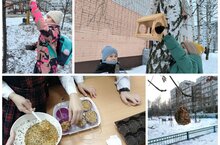 Учащиеся объединения "Экология и информатика", участвуя в Марафоне подкормки птиц зимой, на занятиях по экологии изготавливают эко-кормушки, а также стационарные подвесные кормушки. Основой для эко-кормушек является зерновая смесь: просо, нежареные семечки, гречиха, семена льна, ячмень, овес, нарезанные кусочки яблока, ягод рябины. Зерновая смесь заливается пищевым желатином в силиконовые формочки и ставится в холодильник до полного застывания. Такая кормушка подходит для мелких птиц, таких как: воробьи, синицы, зеленушки, снегири, свиристели и др. Подкармливайте птиц, и тогда до весны их доживет значительно больше.