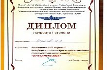 24 марта 2016 года Зарипов Ильдар - воспитанник объединения "Авиамоделирование" награжден Дипломом лауреата I степени за участие в Региональной научной конференции-конкурсе технического творчества школьников "Интеллект-2016".