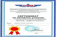 14 апреля 2016 года воспитанник объединения "Авиамоделирование" Зарипов Ильдар принял активное участие к научно-практической конференции "Инженер- профессия будущего" и занял III место.