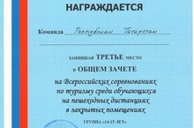 Результаты участия обучающихся ДДЮТиЭ "Простор" во Всероссийских соревнованиях по туризму среди обучающихся на пешеходных дистанциях в закрытых помещениях 16.02.2017