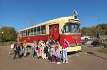 Ребята с удовольствием прогулялись по "Туган авылым" и посмотрели на старинные трамваи, троллейбусы и автобусы, на которых ездили в школу раньше прабабушки и прадедушки.