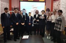 С помощью презентации Фарида Бакиевна рассказала о своей работе и экспонатах музея детской литературы. Ребята с удовольствием рассматривали старинные фотографии и с большим интересом слушали рассказ о татарских писателях, воевавших на фронтах Великой Отечественной войны. В ответ обучающиеся школы с трепетом и волнением декламировали пронзительные стихи Мусы Джалиля о любви, о Родине, о жизни и смерти. -