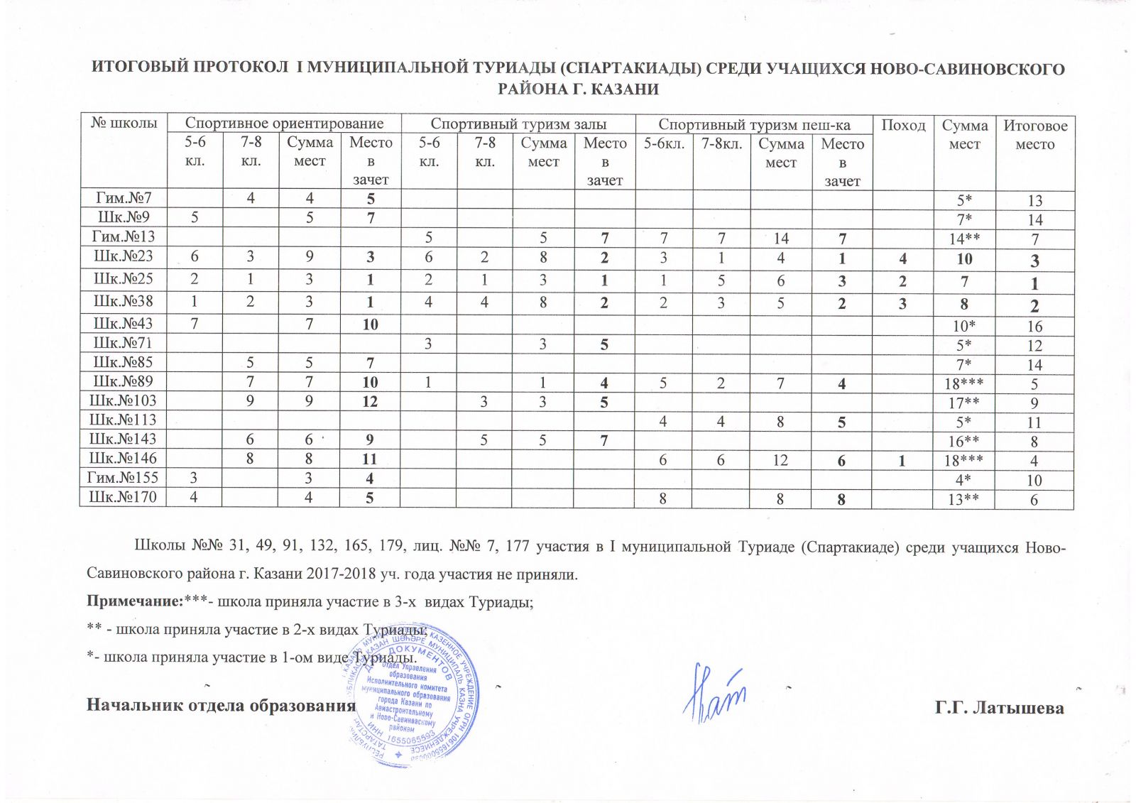 1. I муниципальная Туриада (Спартакиада) среди учащихся  Ново-Савиновского района г. Казани 2017-2018 учебного года