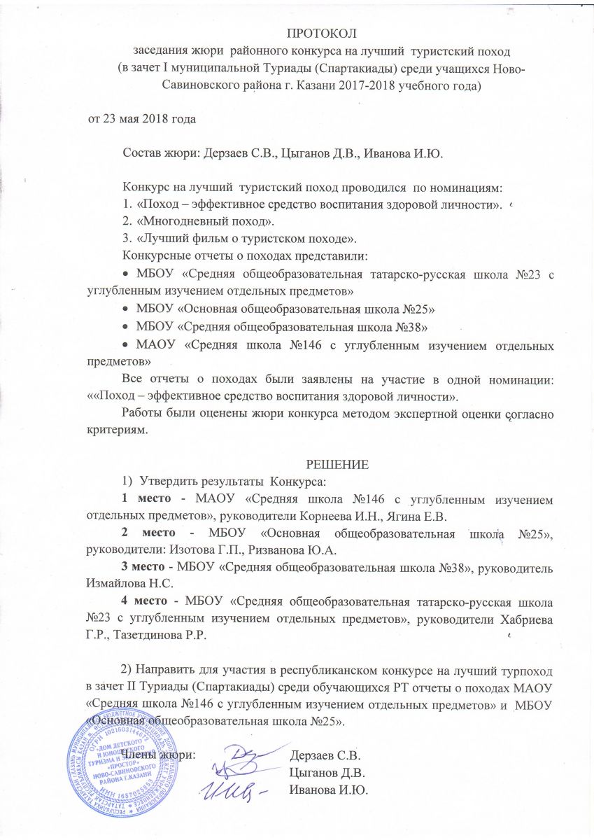1.4. Районный конкурс на лучший туристский поход (в зачет I муниципальной Туриады (Спартакиады) среди учащихся  Ново-Савиновского района г. Казани 2017-2018 учебного года)