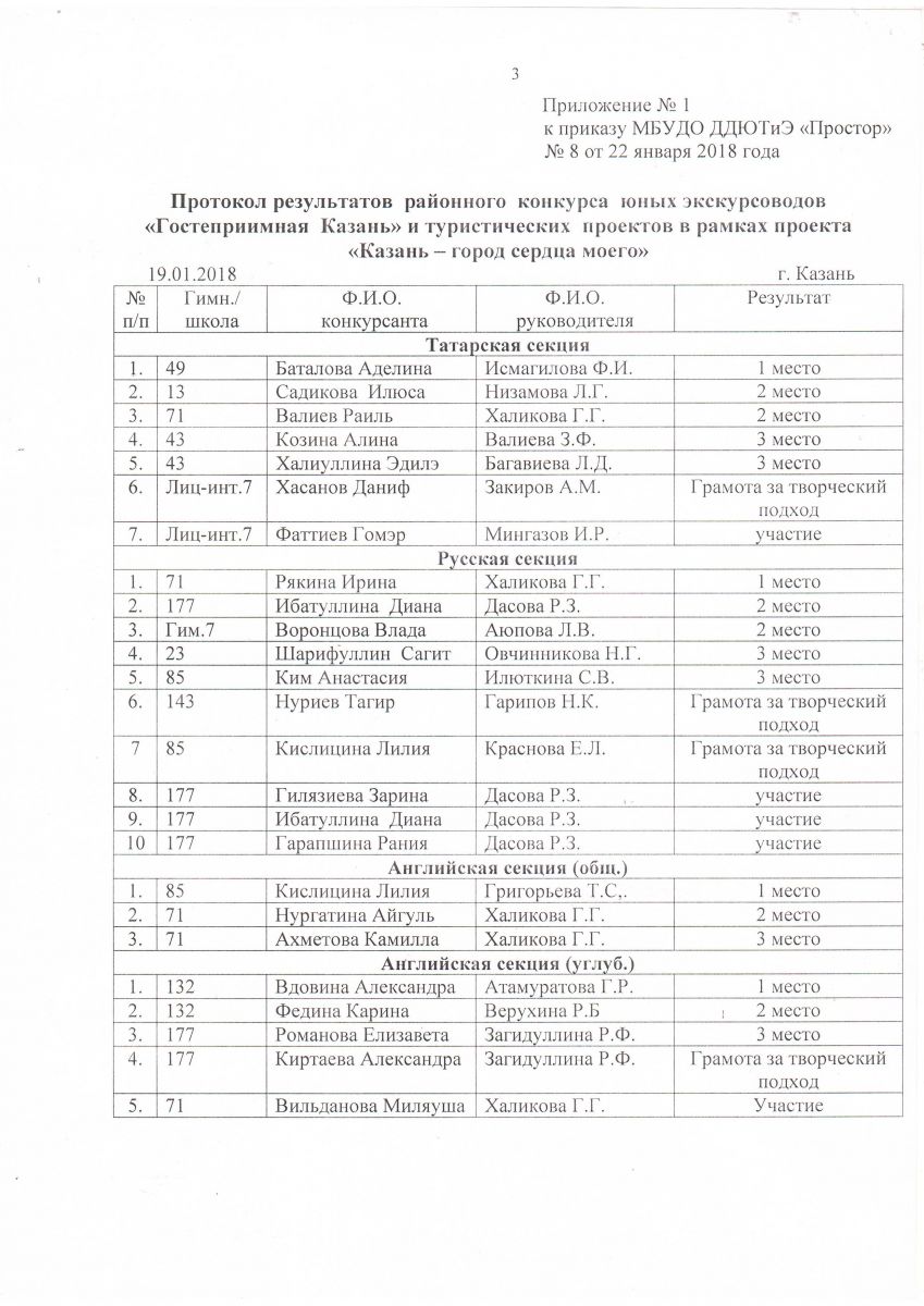 4. Районный конкурс юных экскурсоводов «Гостеприимная Казань» и туристических проектов в рамках проекта «Казань – город сердца моего». Дата проведения 19.01.2018