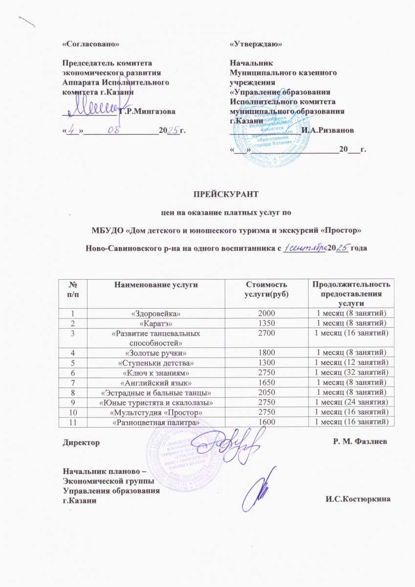 Документы об утверждении стоимости обучения