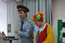 Веселое и поучительное представление о правилах дорожного движения посмотрели наши ребята.