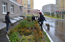 Сегодня всем коллективом участвовали в общегородском субботнике. Моросящий дождик помогал мыть дорожки))))