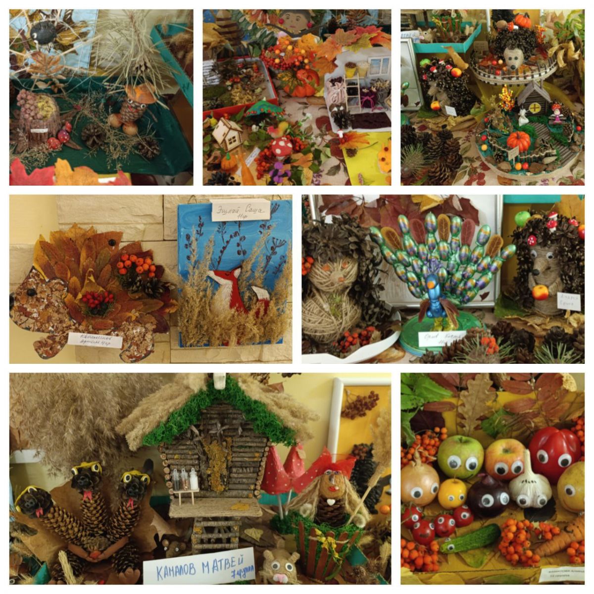 Дети и родители с большим удовольствием сделали и принесли поделки из природного материала, сделанные своими руками. Поделки были сделаны из овощей, веточек, коры деревьев, из ягод, травы. Было видно, что все поделки сделаны с желанием, удовольствием, очень аккуратно, с фантазией.