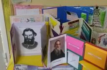 Заключительный этап работы по теме "2018 год в Татарстане-год Л.Н. Толстого". Выставка рисунков и лэпбуков по данной теме.