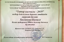Воспитанница подготовительной группы нашего детского сада - Хусаинова Камилла, стала Лауреатом первого этапа городского конкурса "Татар кызчыгы - 2019".