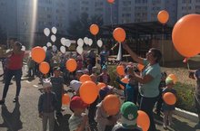 Педагоги и воспитанники запустили в небо воздушные шары, как символ мира и добра!