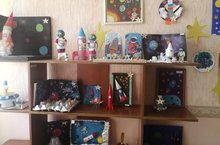 Проведенные в группе занятия и беседы были направлены на развитие познавательных и творческих способностей воспитанников, которые осуществлялись через различные виды детской деятельности – чтение рассказов о космосе, планетах, космонавтах, создание макета «Солнечная система», «12 апреля», «День космонавтики», выставка детских рисунков на тему «День космонавтики», «Звезды и кометы», конструирование поделок из бросового материала совместно с родителями. -