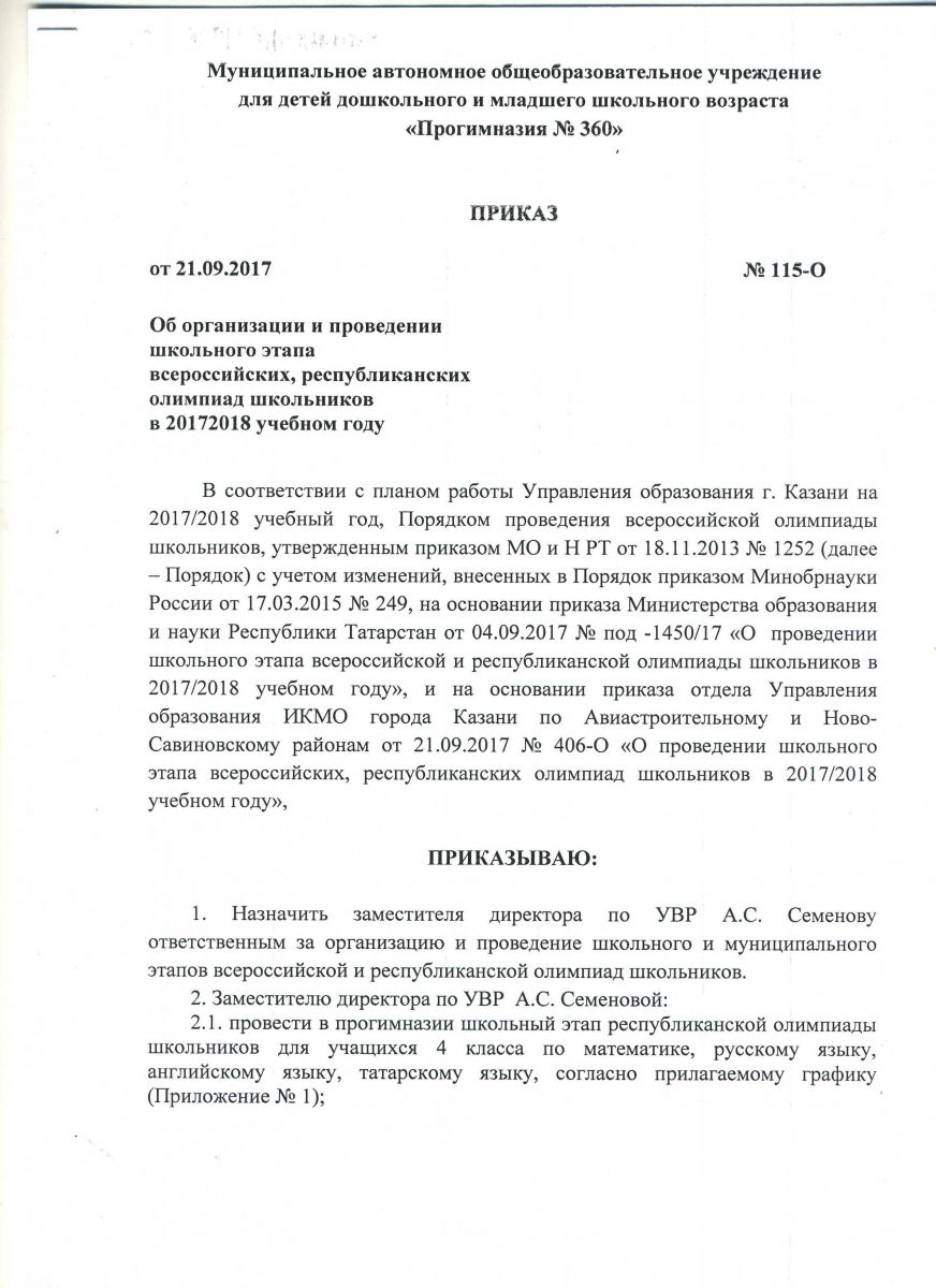 Организация и проведение всероссийской и республиканской олимпиады школьников в 2017-2018 учебном году 27.09.2017