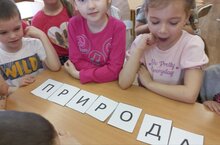 На пути им встретились станции "Загадочная", "Безопасность на природе", "Лесная тропа", "Экологический десант". За каждую пройденную станцию ребята получали от Симки букву, в конце путешествия необходимо было собрать слово ПРИРОДА. И ребята справились с этим заданием.