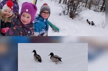 Сегодня на территорию нашего детского прилетела семья уток. Дети с удовольствием наблюдали за семейством. По случаю вспомнили перелетных и зимующих птиц, чем они питаются и как люди помогают зимующим птицам в холодное время года.