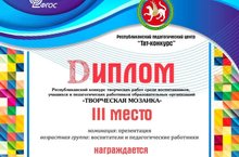 Наши педагоги Султанова Г.И и Насибуллина Л.О. стали дипломантами республиканского конкурса творческих работ "Творческая мозаика". Поздравляем наших коллег и желаем дальнейших творческих свершений