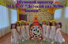 В районном конкурсе детских оркестров, наш музыкальный коллектив с шумовым оркестром "Часики" из популярного мультфильма "Фиксики" победили в номинации "Оригинальная идея".