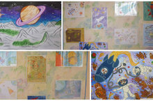 В ходе тематической недели "Космос" в холле детского сада оформлена выставка детских рисунков "Далекий космос".