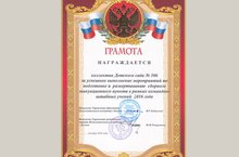 Коллектив детского сада был награжден Грамотой Управления образования Исполнительного комитета г.Казани за успешное выполнение мероприятий по подготовке и развертыванию сборного эвакуационного пункта в рамках командно-штабных учений 2016 года.