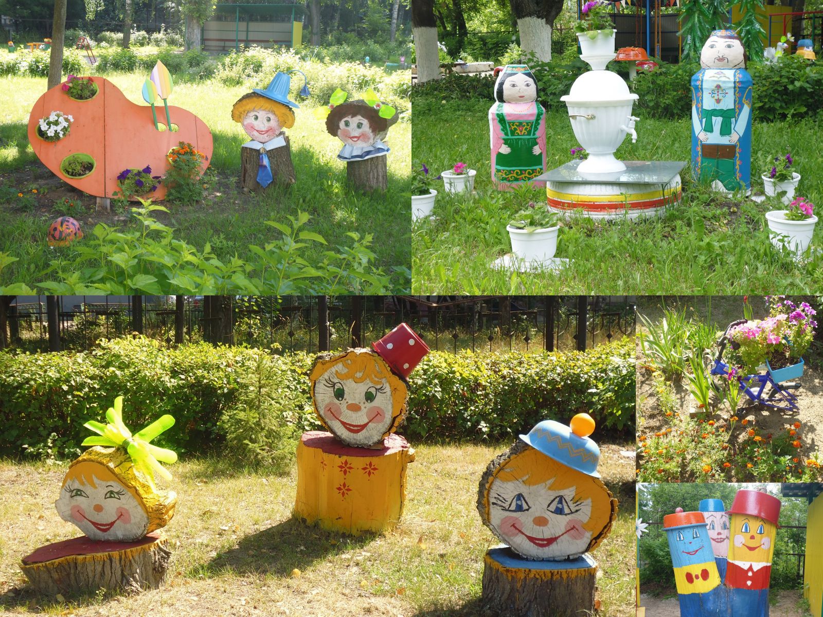 Территория ДОУ (10 прогулочных участков, спорт площадка, цветники, огород)