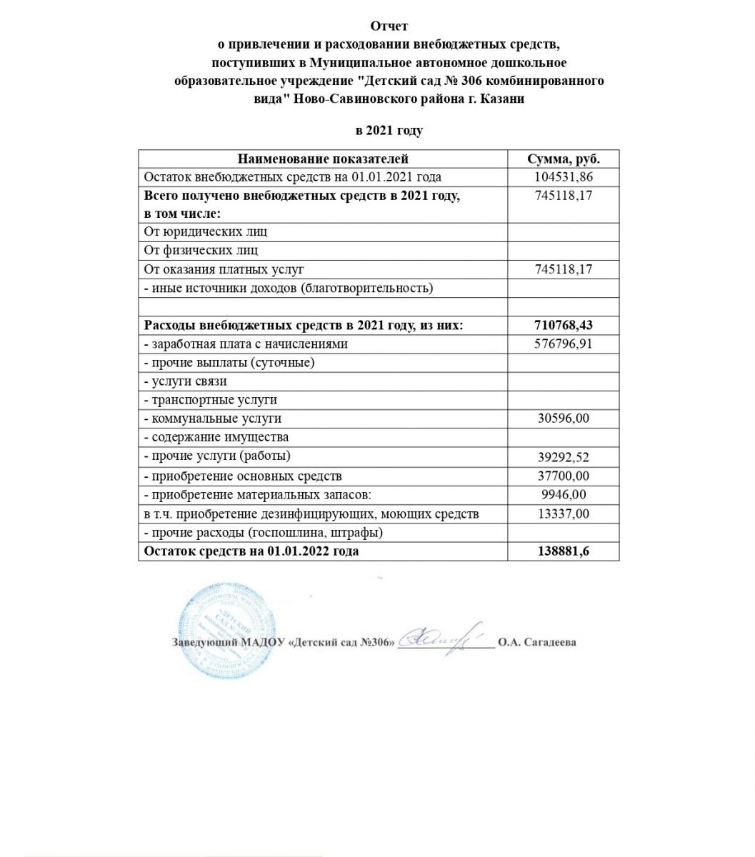 Отчет о привлечении и расходовании внебюджетных средств, поступивших в 2021 году