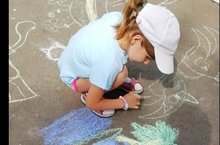 В этот день асфальт под ногами превратился в холст, а фантазия не знала границ. Асфальт расцветал удивительными красками, и желтое солнце светило лучами, и на лугу расцвёл ковёр из разноцветных цветов…Дети рисовали цветы, бабочек, солнышко, природу, мороженное и все то, что наиболее привлекательно для них в данный момент. Дети очень старались, аккуратно раскрашивая свои рисунки. Никто не скучал, были все заняты творчеством.
