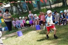 На праздник с детьми пришли играть персонажи Батыр и Шурале.Дети познакомились с татарскими народными играми: бег в мешках, разбивание горшка, бег с яйцом на ложке , скачки на лошадях “Наездники”, “Кто быстрее донесёт воду".