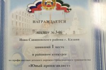 Наш детский сад занял 1 место в районном конкурсе по профилактике дорожно-транспортного травматизма "Юный пропагандист"