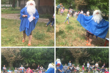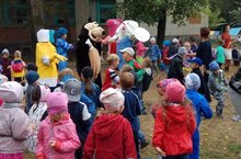 Сегодня наших ребят пришли поздравить с началом учебного года сказочные герои...