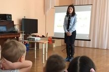 Сегодня в наш детский сад приходила инспектор ГИБДД Валеева Юлия Юрьевна. Она провела плановую проверку организации работы в детском саду по профилактике ДДТТ, а затем провела занятия с детьми среднего, старшего и подготовительного возраста. Ребятам очень понравились мультики "Смешарики на дороге".