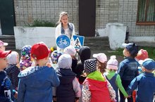 Экскурсия детей младшего дошкольного возраста к перекрестку улиц Октябрьская-Восстания "Учимся правильно переходить через дорогу" 19.06.2018