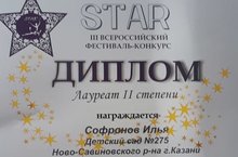 Поздравляем нашего воспитанника Софроного Илью с победой в III ВСЕРОССИЙСКОМ ФЕСТИВАЛЕ-КОНКУРСЕ STAR