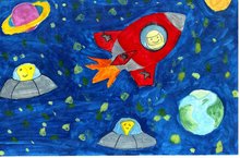 В честь Дня Космонавтики с детьми была проведена беседа о великом подвиге Юрия Гагарина, просмотрен фильм о космосе. Все свои впечатления дети отразили в художественном творчестве. -