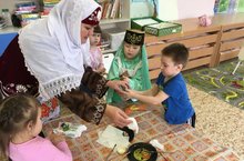 В средней татарской группе прошло занятие по аппликации и познанию.