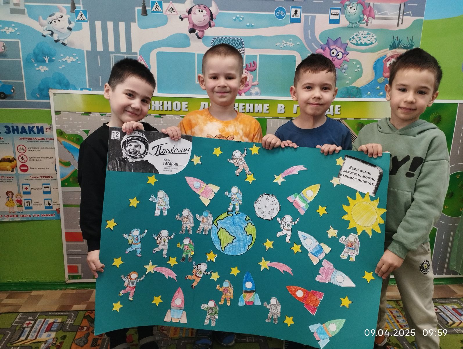 День космонавтики, отмечаемый 12 апреля, является важным праздником, который знакомит детей с историей освоения космоса и вдохновляет на мечты о будущем.. Мы помним эту дату и гордимся, что именно наш, русский человек, покорил просторы космоса. В этот день воспитанники познакомились с историей освоения космоса, узнали о первом полете человека в космос, о новых профессиях, связанных с космонавтикой и получили большой заряд положительных эмоций. В завершении ребята изготовили поделки на тему космоса, оформленные в выставку «Путешествие в космические дали».