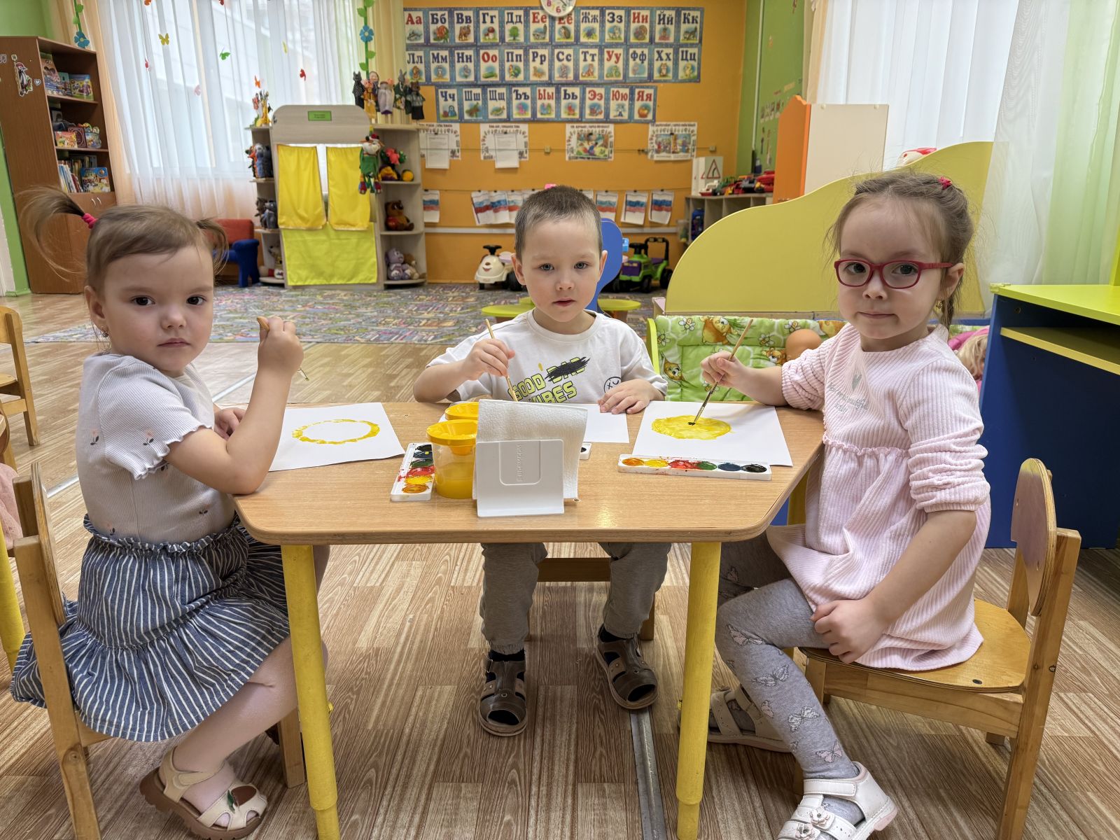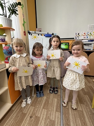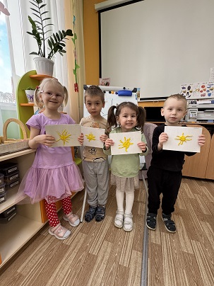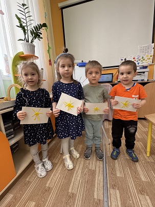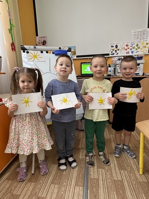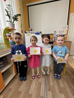 Сегодня дети младшей группы познакомились со сказкой Корней Чуковского " Краденное солнце" . Дети очень расстроились, когда злой крокодил проглотил солнца и а дети самостоятельно решили его вернуть. Они сами слепили из пластилина солнца и очень обрадовались .