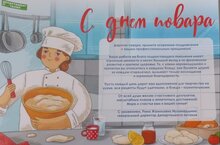 Сегодня мы поздравляем с профессиональным праздником наших поваров. От вашего профессионализма и отношения к делу зависит здоровье и настроение людей. Пусть ваши блюда всегда будут вкусными, полезными и восхитительными! Вдохновения вам! Готовьте с любовью! Будьте здоровы и радостны.