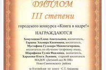 За участие в городском конкурсе «Книга в кадре» педагоги детского сада получили Диплом III степени. Поздравляем!