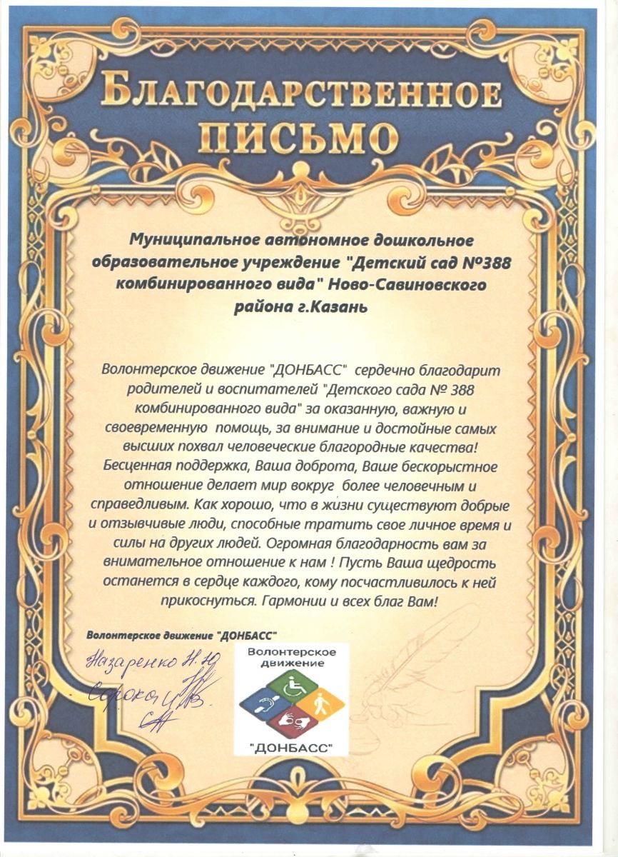 Муниципальное автономное дошкольное образовательное учреждение "Детский сад №388 комбинированного вида Ново-Савиновского района г. Казани"