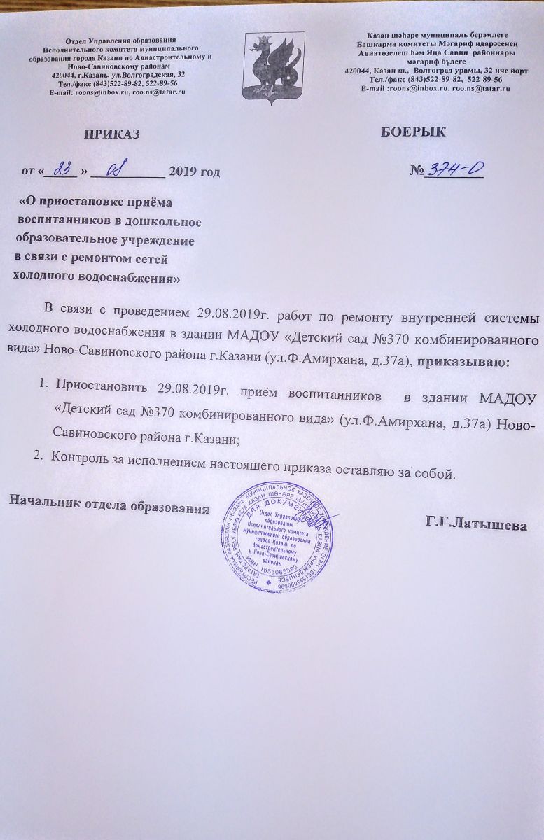 МАДОУ "Детский сад №370 комбинированного вида Ново-Савиновского района г. Казани" (реорганизация)